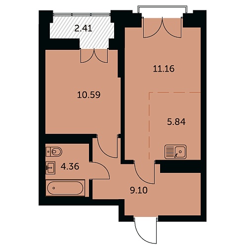Общая площадь: 42.2 м2