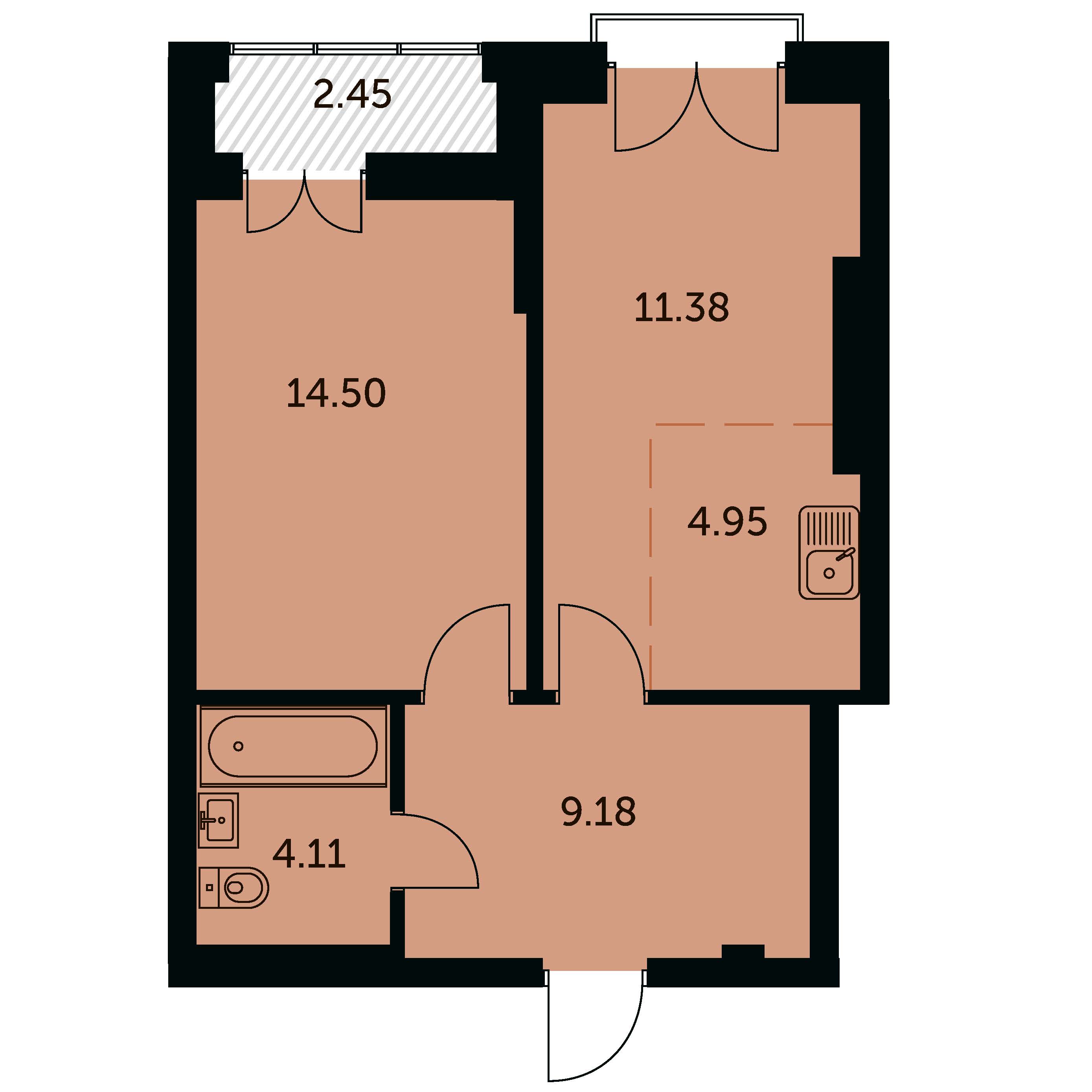 Общая площадь: 45.4 м2
